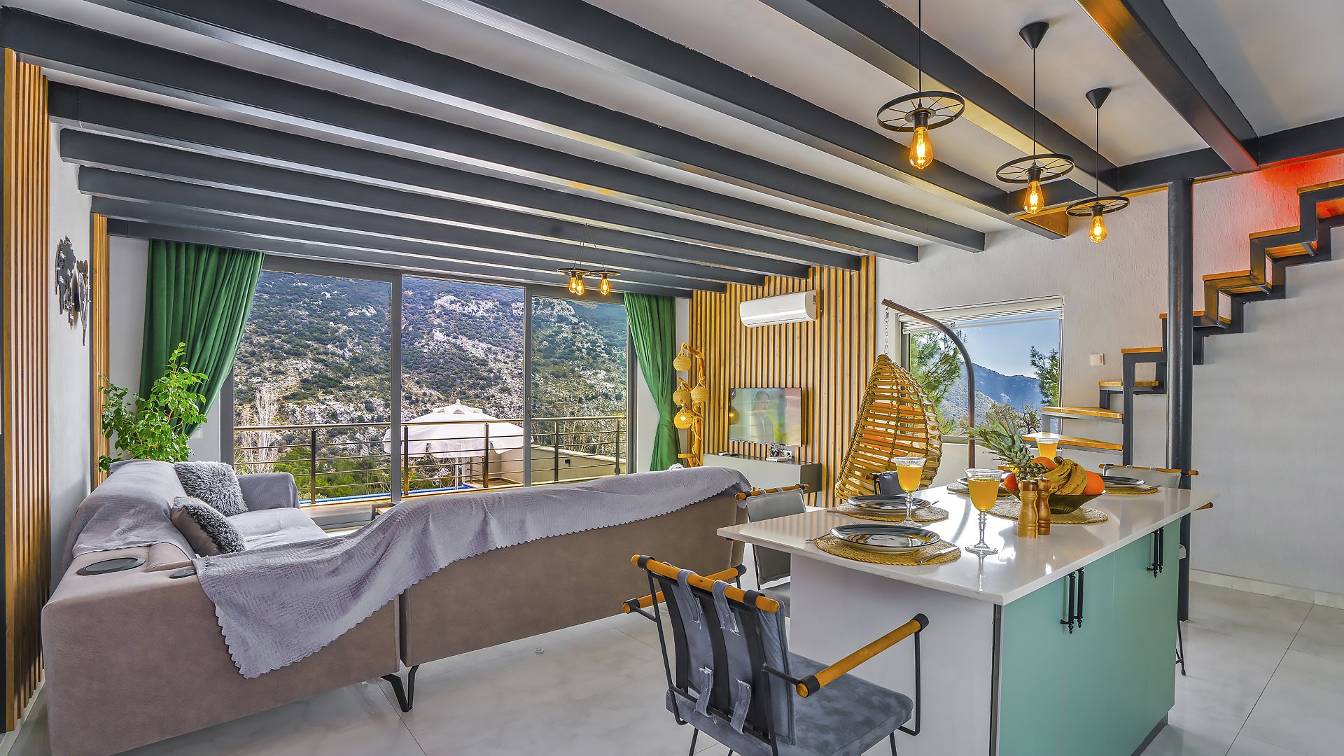 Located in the heart of breathtaking natural scenery, our villa features a 2+1 layout, and its large glass doors allow guests to enjoy the magic of nature at every moment.