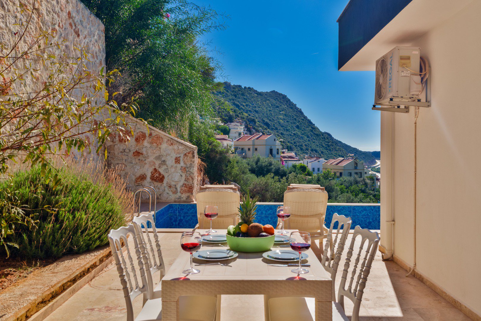 Situated in the Kızıltaş area of Kalkan, overlooking the sea and surrounded by the soothing sounds of birds, offering a peaceful atmosphere.