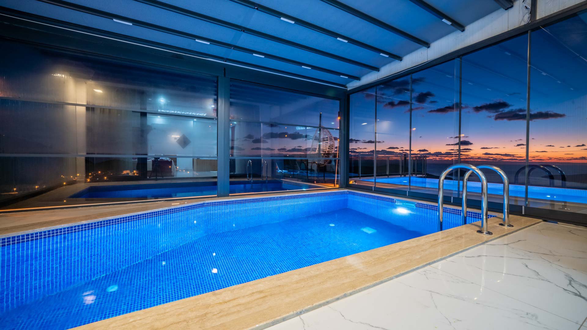 Our villa, located in the heart of the magnificent sea view, has 2 bedrooms, 2 bathrooms with an open-plan lounge/kitchen area and offers our guests the opportunity to experience the magic of nature at any time thanks to its large glass doors.