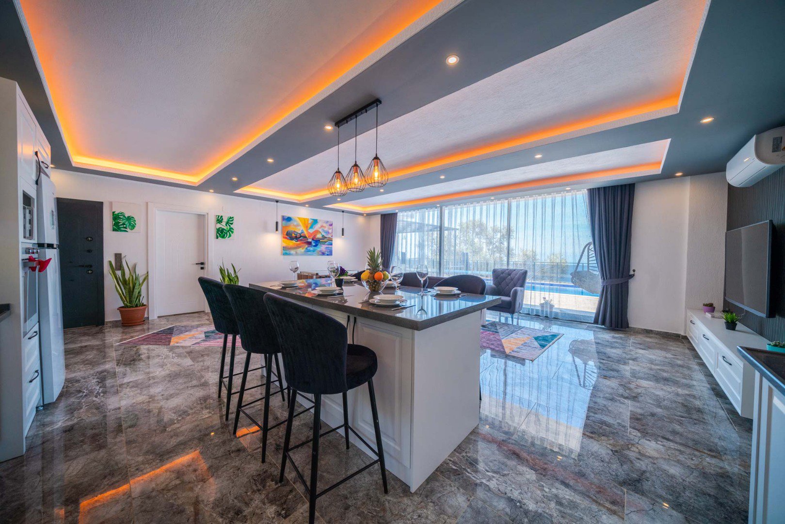 Located in the heart of breathtaking natural scenery, our villa offers a 2+1 layout, and its wide glass doors allow guests to enjoy the magic of nature at every moment.