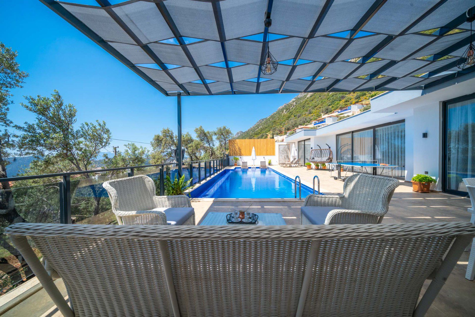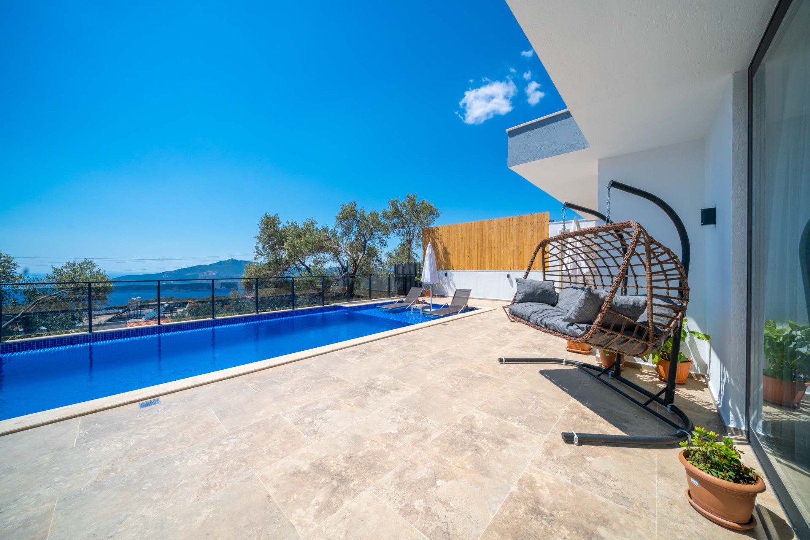 A peaceful atmosphere in Kalkan Kördere, accompanied by bird songs and a magnificent sea view.