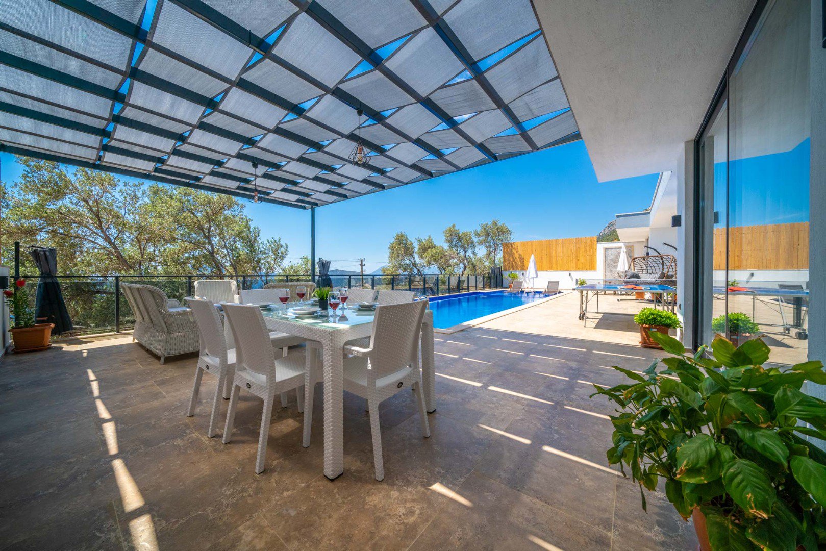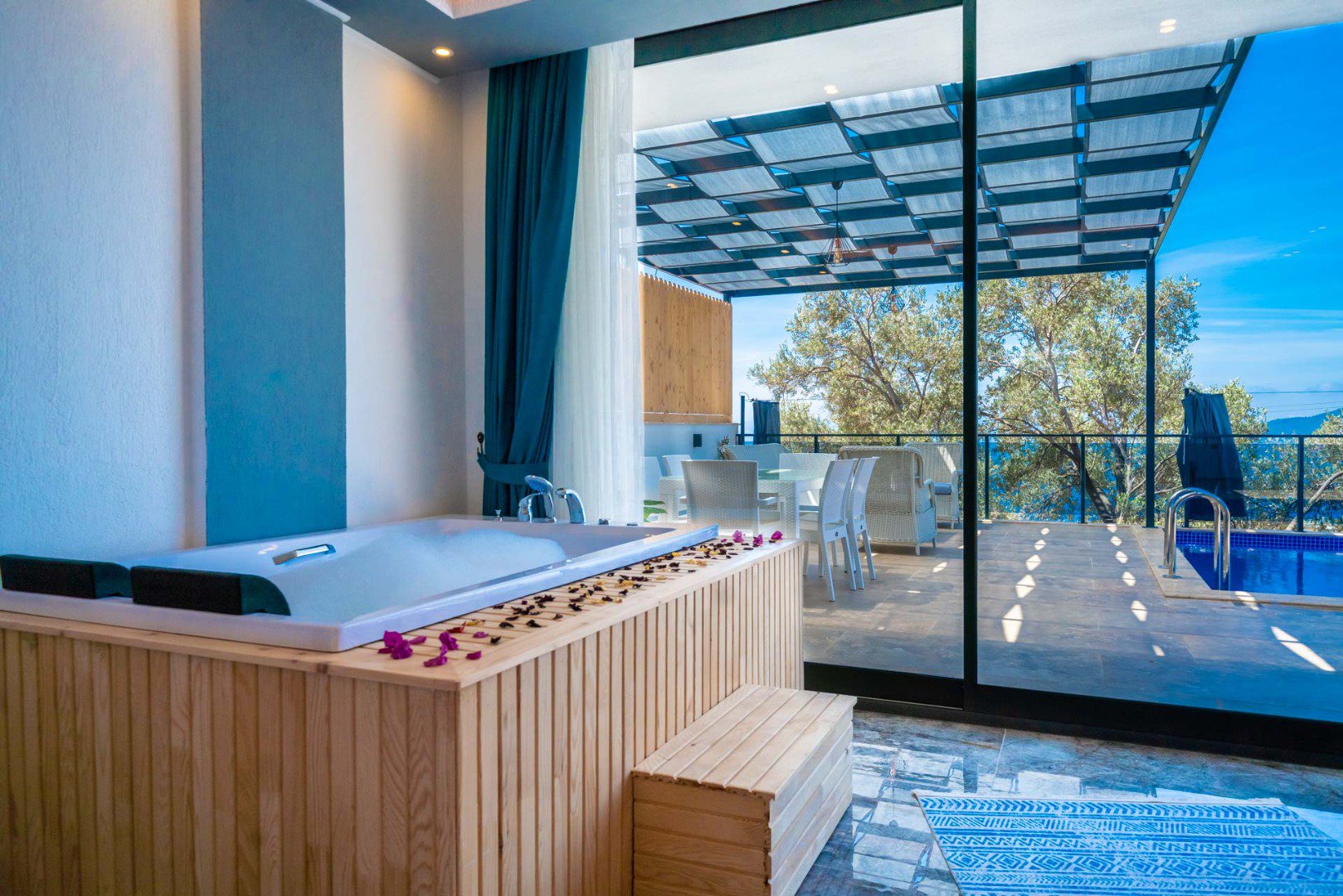Your private swimming pool, accessible from all rooms.