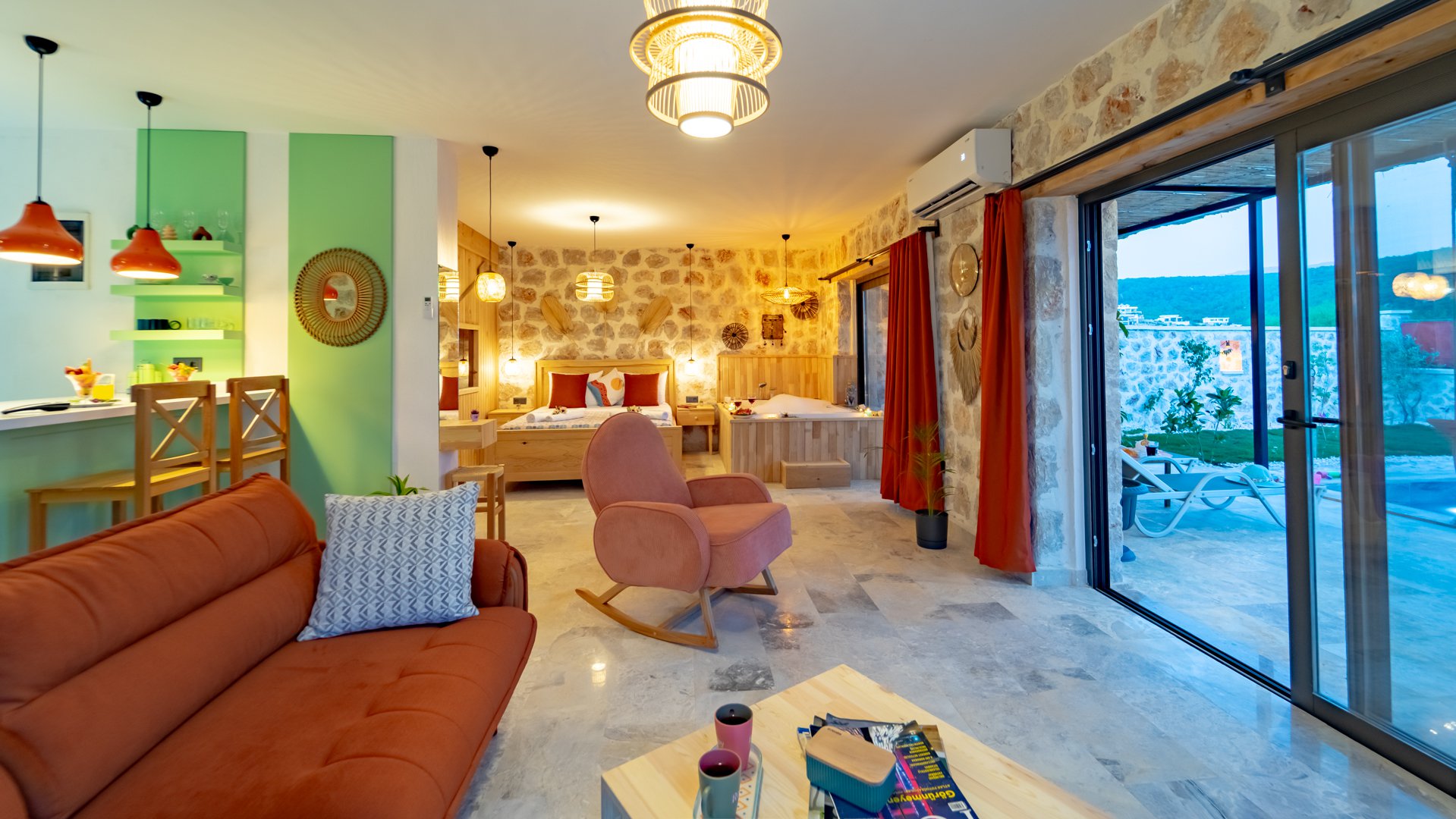 Located in the heart of magnificent sea and nature views, our villa features a 1+1 layout, and its large glass doors allow guests to experience the magic of nature at any moment.