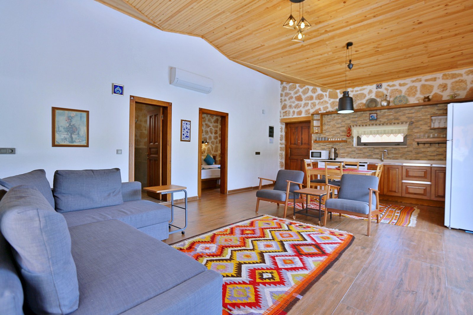 A peaceful atmosphere accompanied by birdsong, located in Saribelen, Kalkan, which overlooks the valley of Saribelen