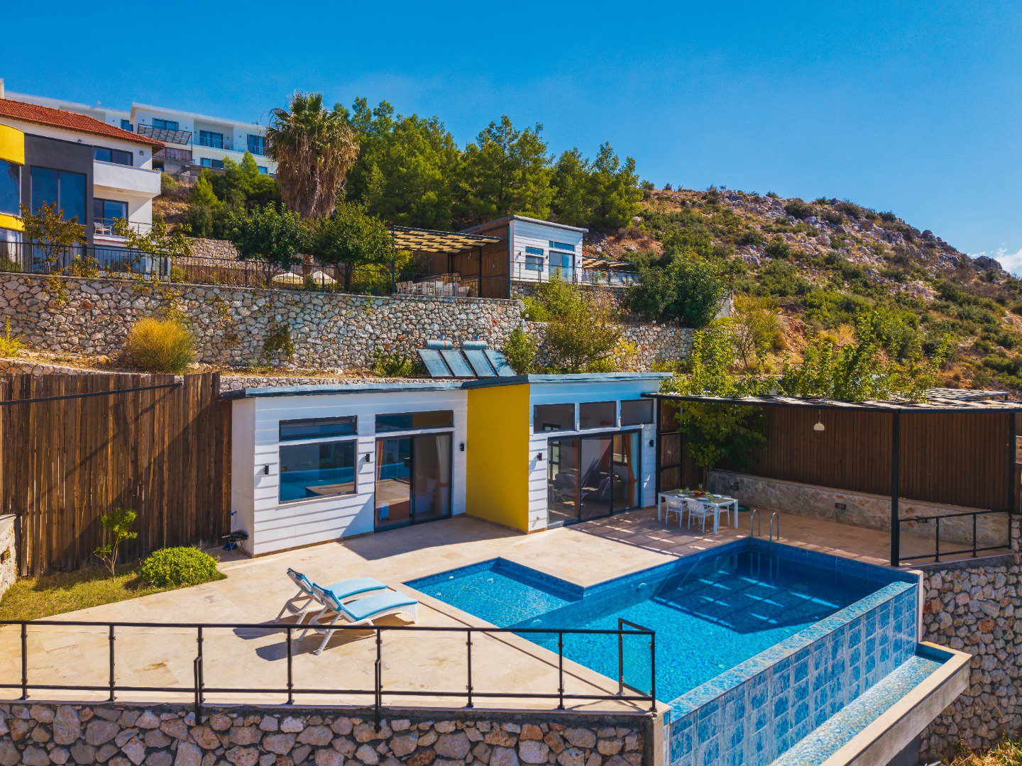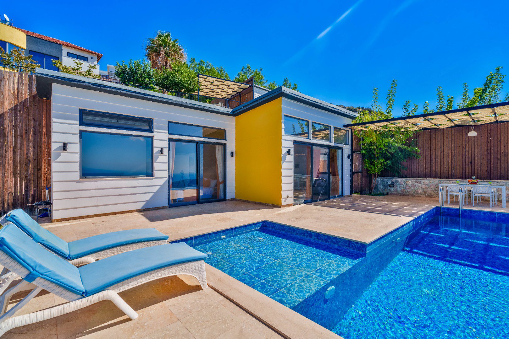 A private swimming pool accessible from all rooms.