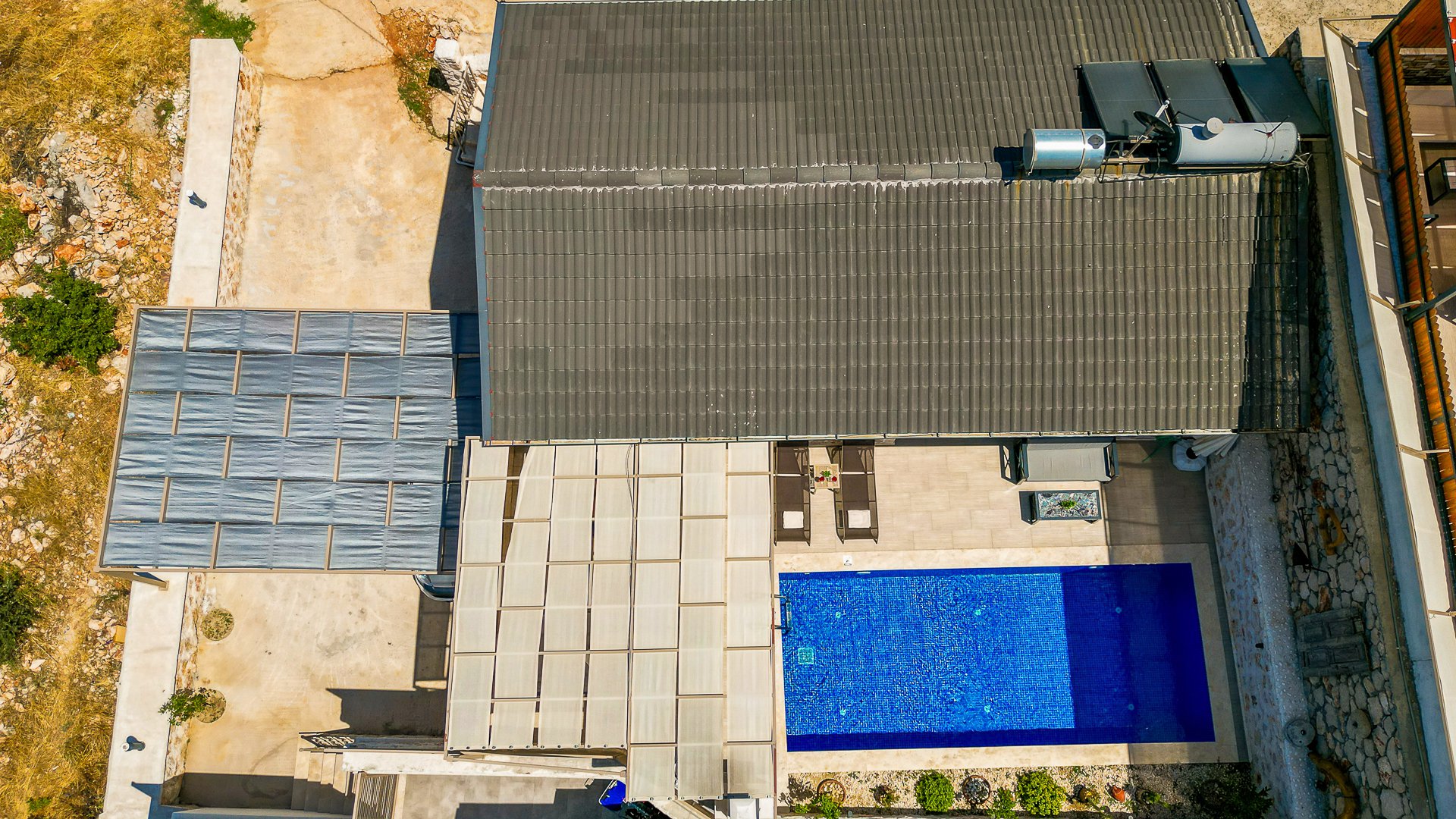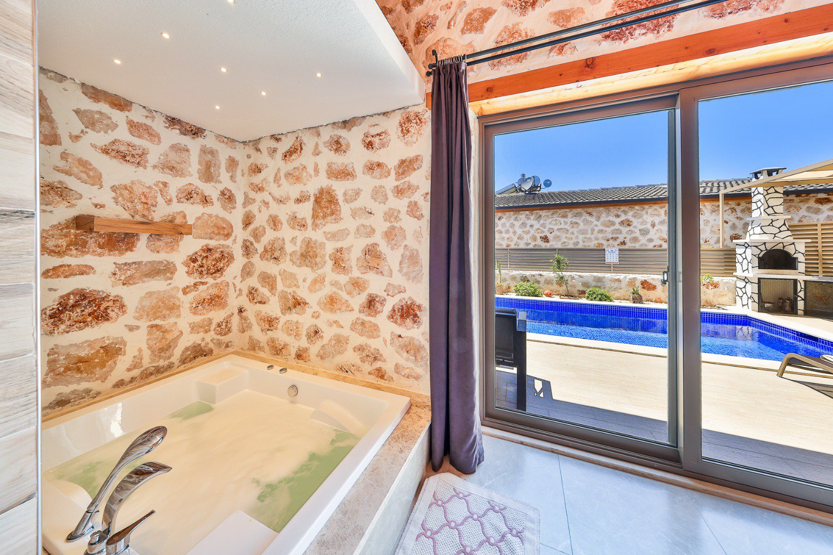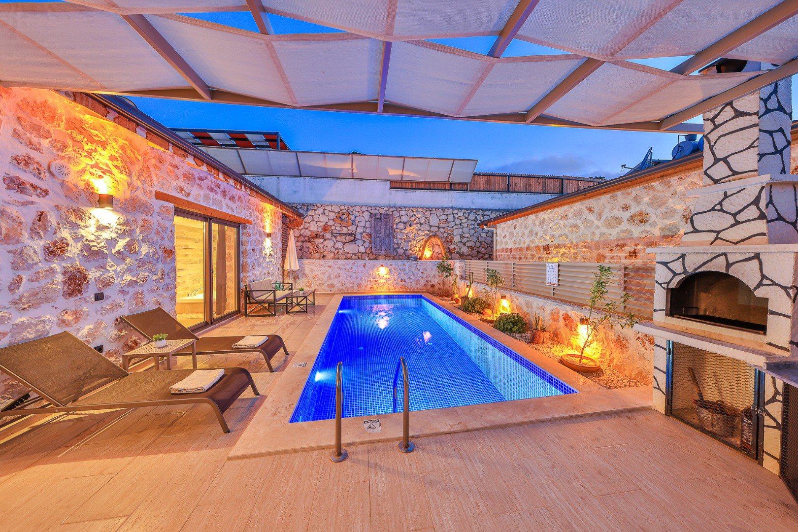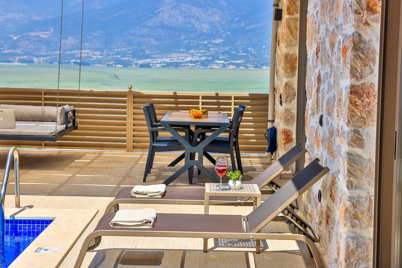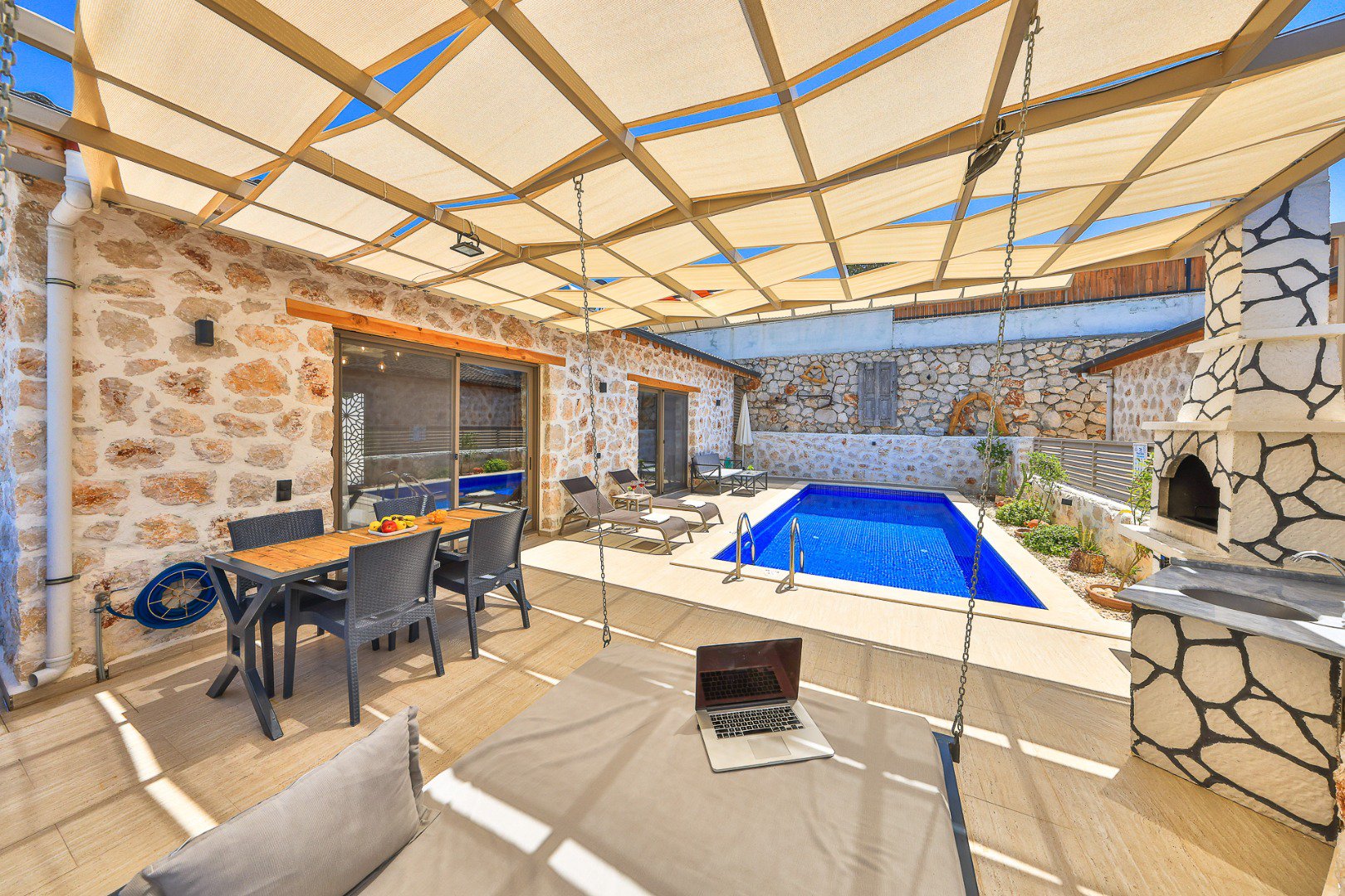 A private swimming pool accessible from all rooms, exclusively for your use.