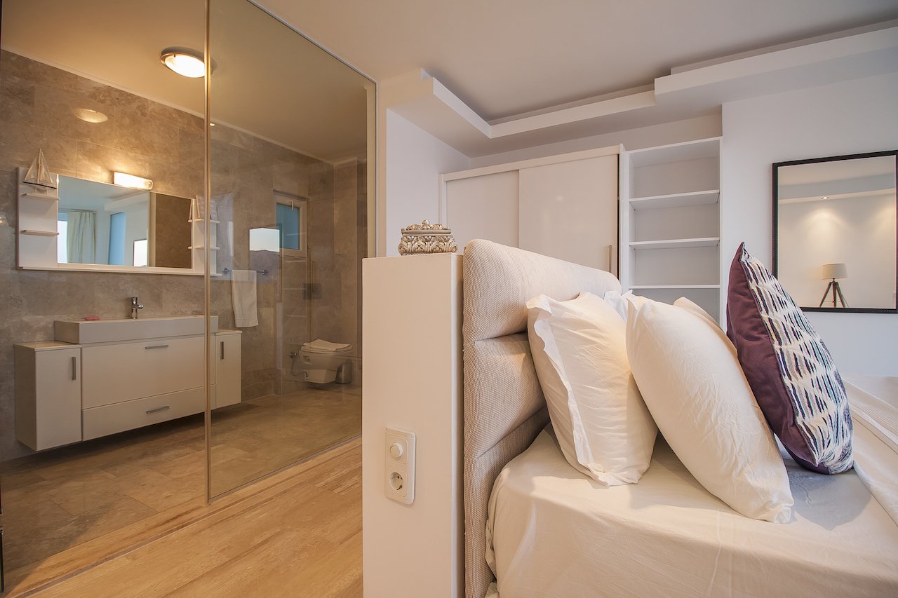Our villa, located in the heart of the magnificent sea view, has 4 bedrooms, 4 bathrooms, a large lounge and kitchen/dining area and offers our guests the opportunity to experience the magic of the sea at any time thanks to its large glass doors.
