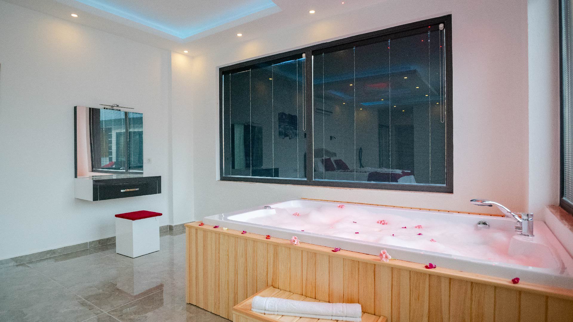 There is a 2m x 1m Jacuzzi located right across from your bedroom.