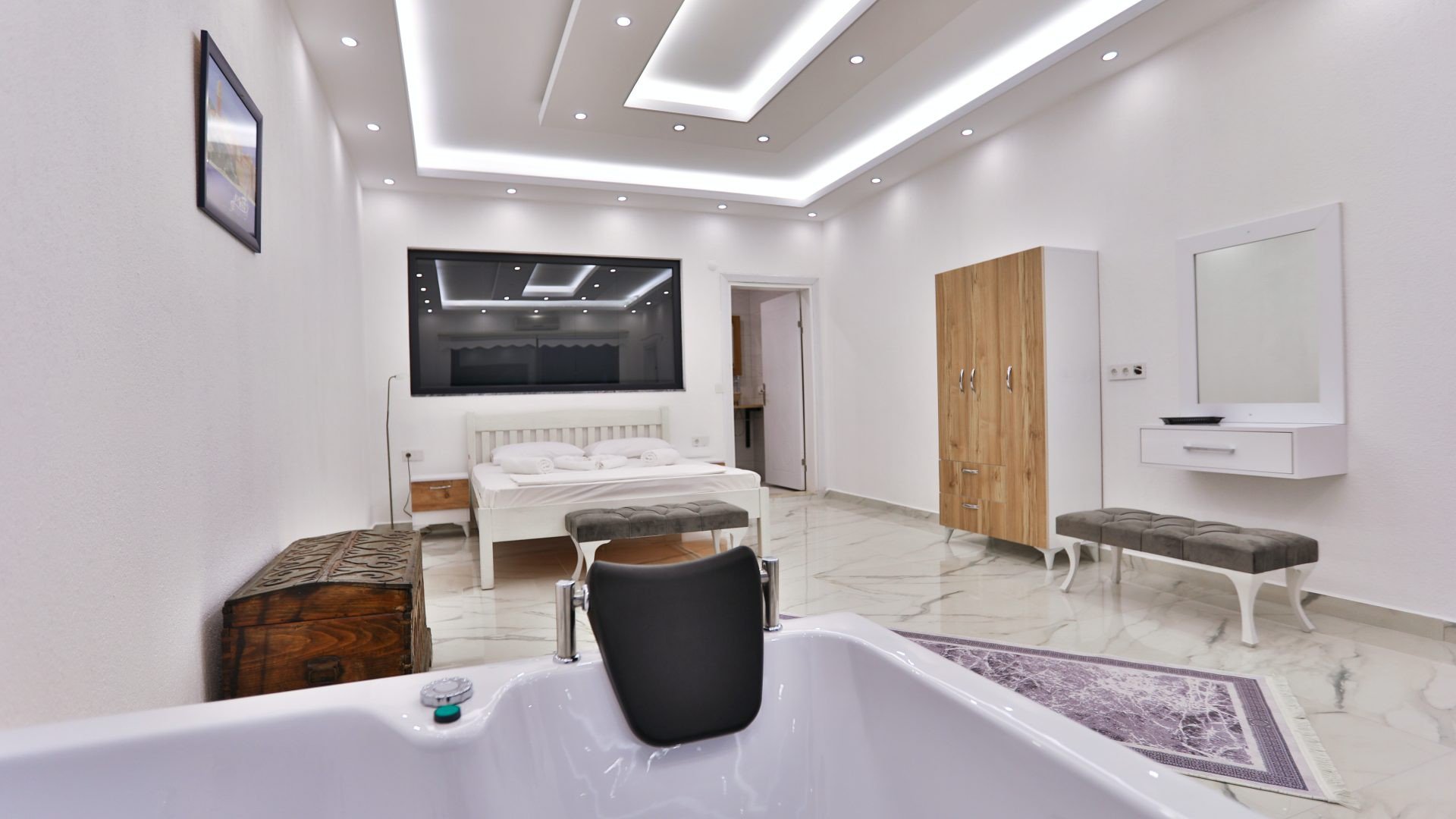 There is a 2m x 1m Jacuzzi located right across from your bedroom.