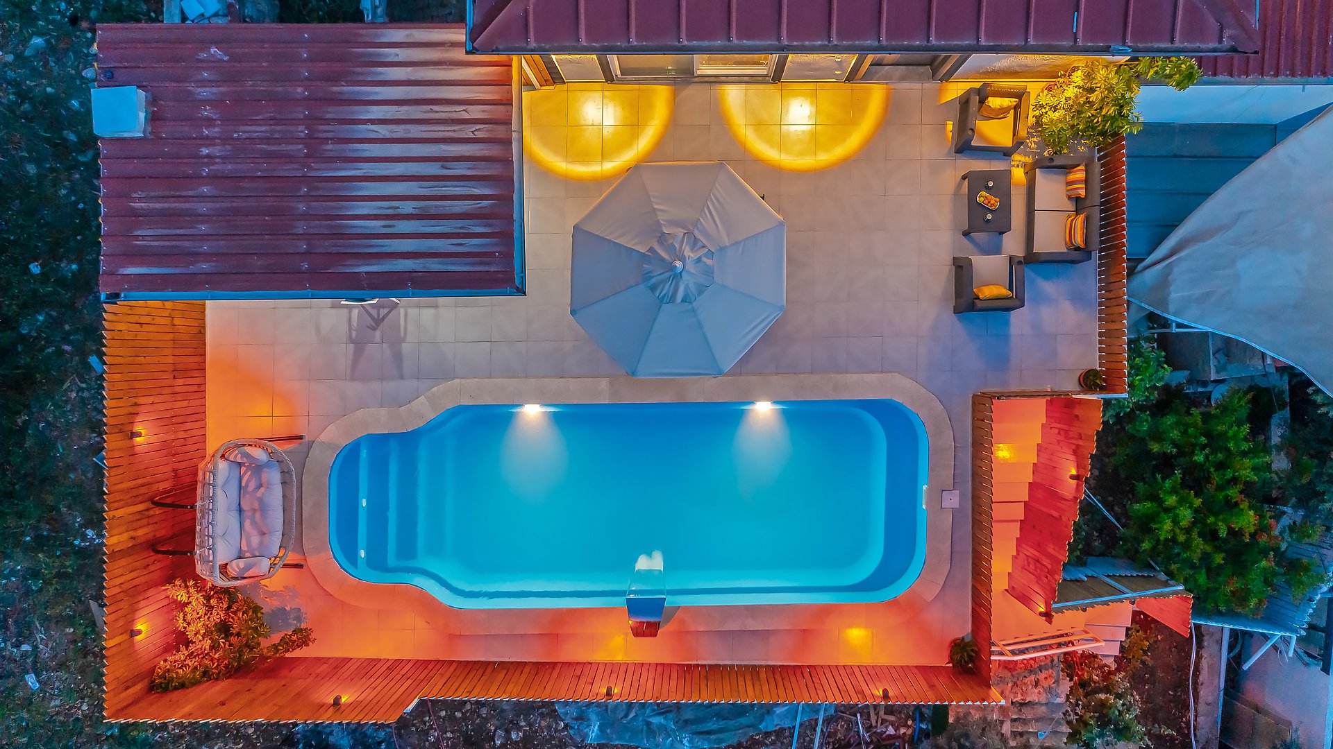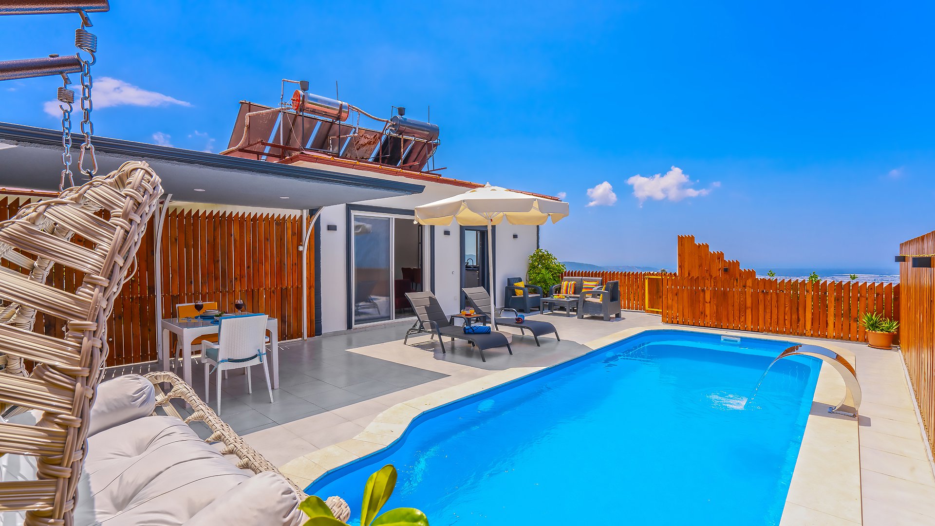 A private swimming pool that you can access from the lunge area.